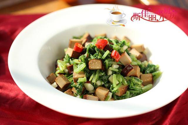 推荐菜谱【萝卜樱炒香干丁】 原料: 萝卜樱子 香干 蒜 红椒 油盐