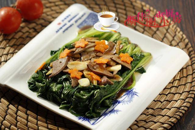 推荐菜谱【 蚝油猪肝扒菠菜】 原料: 菠菜 猪肝 蒜 胡萝卜姜末 料酒 生抽 淀粉 油盐