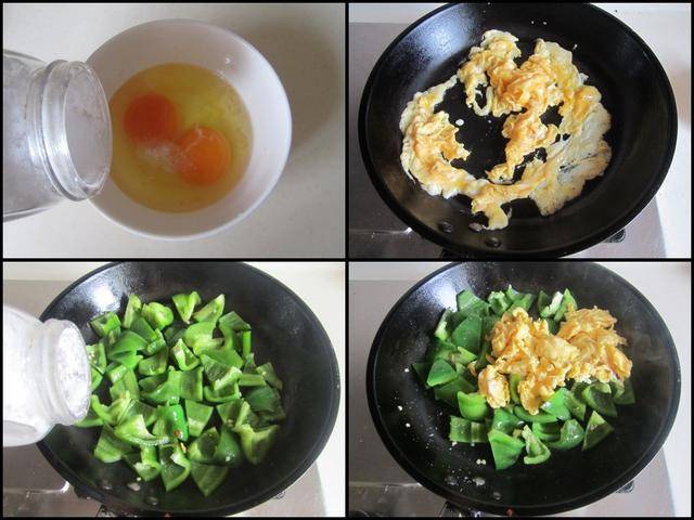 制作过程: 菜椒去除中间的核,洗净后切成块备用。 鸡蛋打入碗中,加入少许盐打散,烧热锅放入少许油,将鸡蛋炒至定型后划散成小块后先盛出来。 烧热锅放入少许油,将菜椒块放进锅中翻炒,将其炒至九成熟后加入少许盐调味翻炒均匀, 最后将炒好的鸡蛋放入锅中翻炒均匀即可盛入盘中。