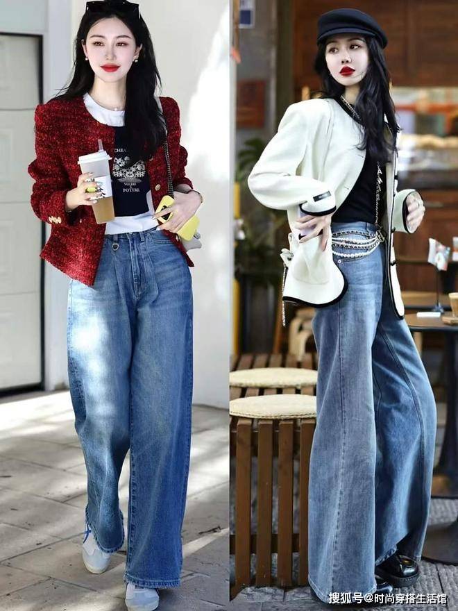 秋天我们穿外套的时候要注意塑造出腰线,毕竟腰线的搭配在哪,我们的腿就从哪开始,那么我们可以选择短外套搭配高腰裤或者高腰裙,瞬间就能优化身材比例。或者是将外套敞开穿,露出内搭将上衣塞进裤腰,瞬间就衬得双腿线条更加显瘦和修长。