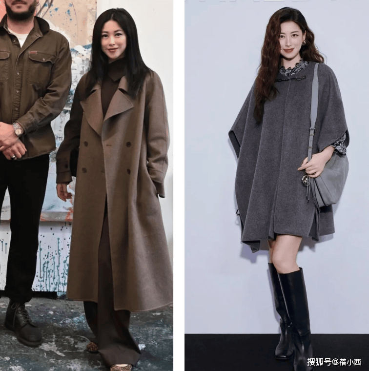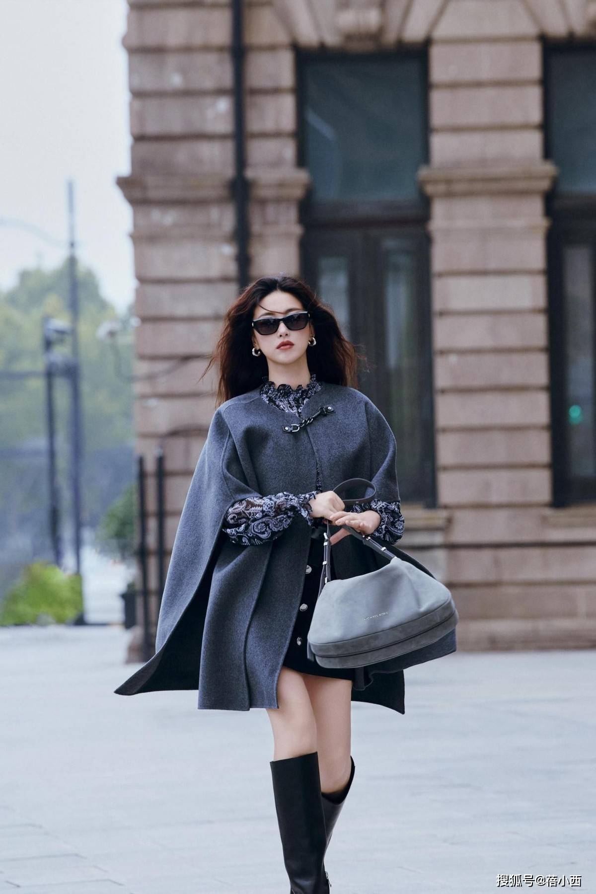 大衣配休闲鞋真的很容易踩雷,尤其是厚底的运动老爹鞋,会让下半身显得沉重拖沓,破坏大衣自带的利落气场。朱珠深谙此道,她的大衣搭配永远围绕“质感统一”展开,要么配靴子,要么搭高跟鞋,每一套都精准踩在“优雅得体”的点上。