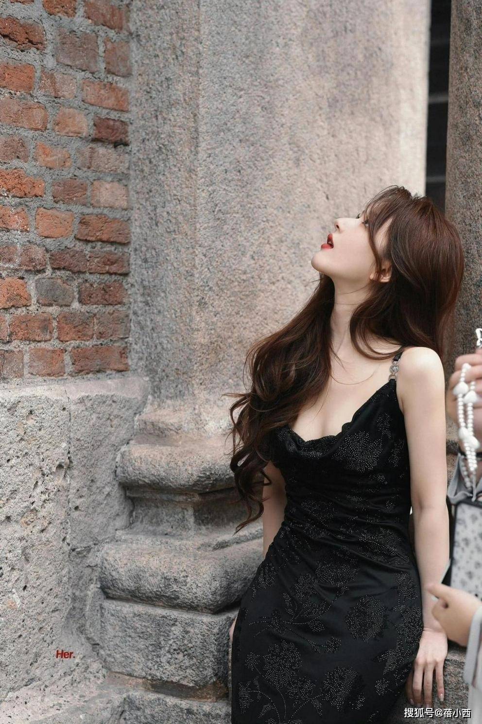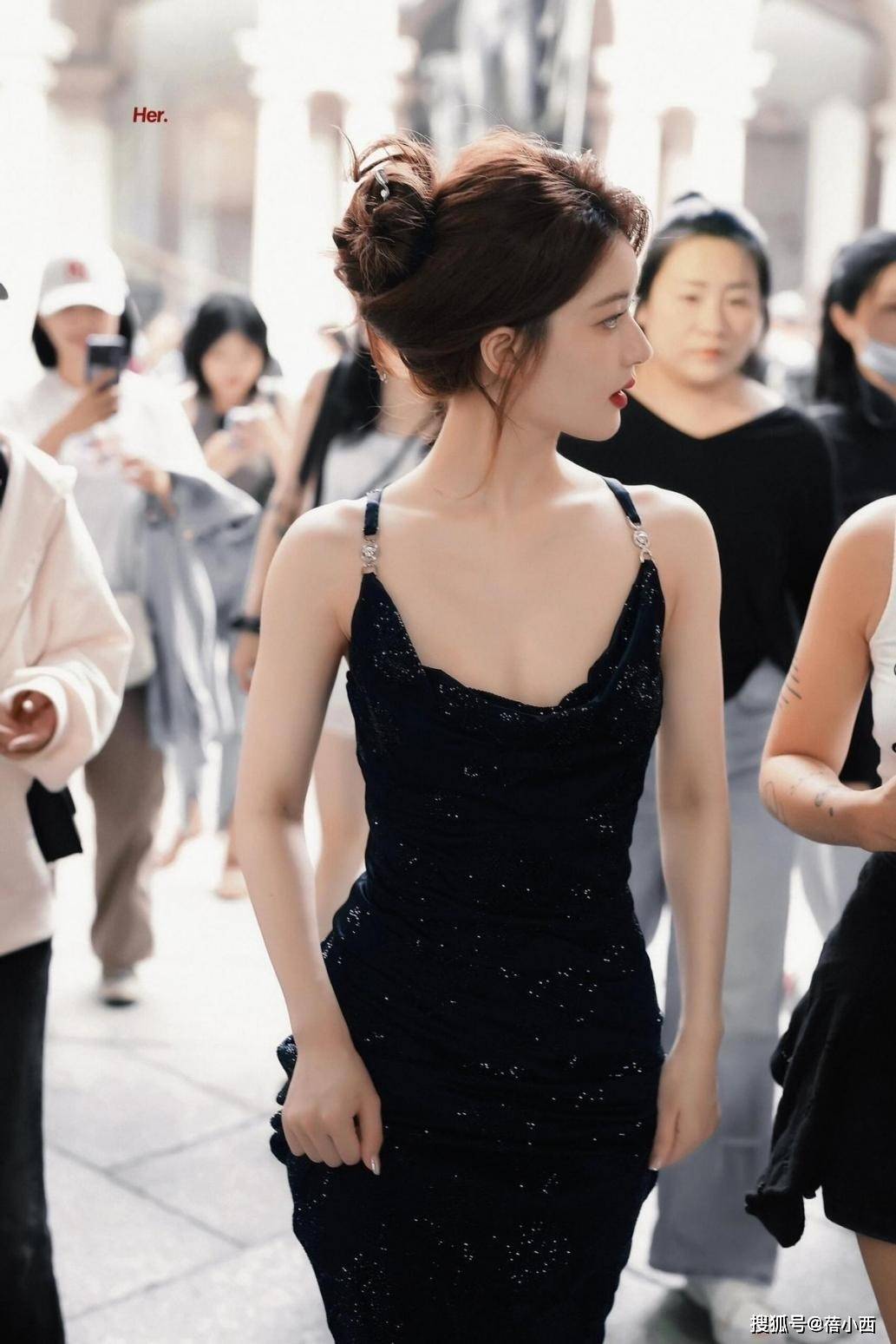 赵露思这一身黑色连衣裙选了微挺括的闪片面料,材质有厚度能贴出腰臀曲线,又不会软塌显赘肉,细闪加哑光底的组合,比纯黑连衣裙看起来更精致,还悄悄弱化了紧身款的厚重感。