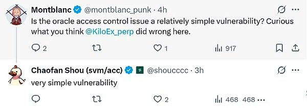 区块链分析公司 Fuzzland 的联合创始人 Chaofan Shou 也表示,这次漏洞很可能是由于价格预言机的问题造成的。他认为,KiloEX 在验证价格预言机时存在漏洞,导致攻击者可以篡改价格。