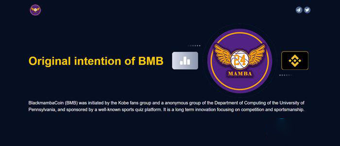 曼巴币(BMB),英文全称Black Mambacoin,是由一群热爱科比·布莱恩特的球迷自发成立的社区发行的代币。这个社区的成员们深受“曼巴精神”的鼓舞,希望通过区块链技术,将NFT、DAO和在线游戏等元素融合在一起。