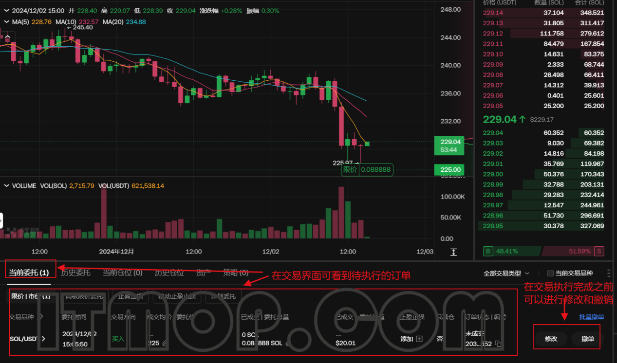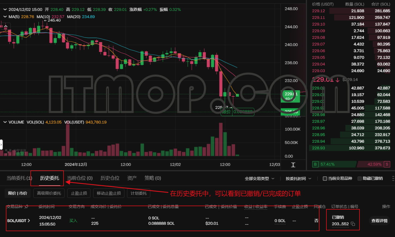 8. 在“历史委托”页面查看已完成或已撤销的订单