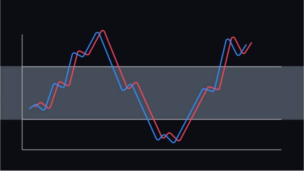 随机指标由 K 线和 D 线组成。K 线是快线,D 线是慢线。当 K 线从下方穿过 D 线时,这是一个买入信号。当 K 线从上方穿过 D 线时,这是一个卖出信号。与 MACD 类似,随机指标和价格走势之间的背离也是重要的参考信号。