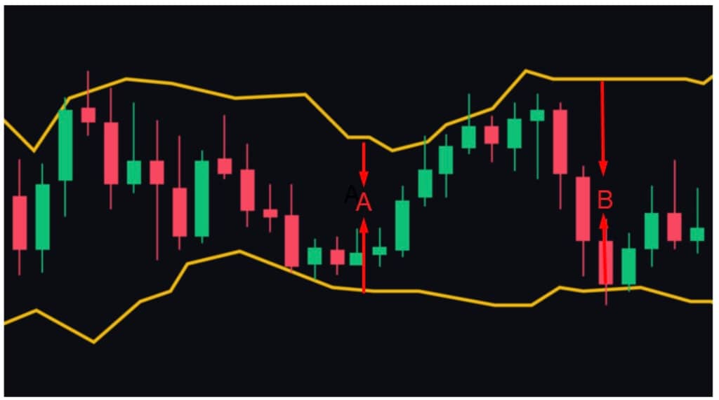 如上图所示,布林线可以帮助交易者判断市场的波动情况。