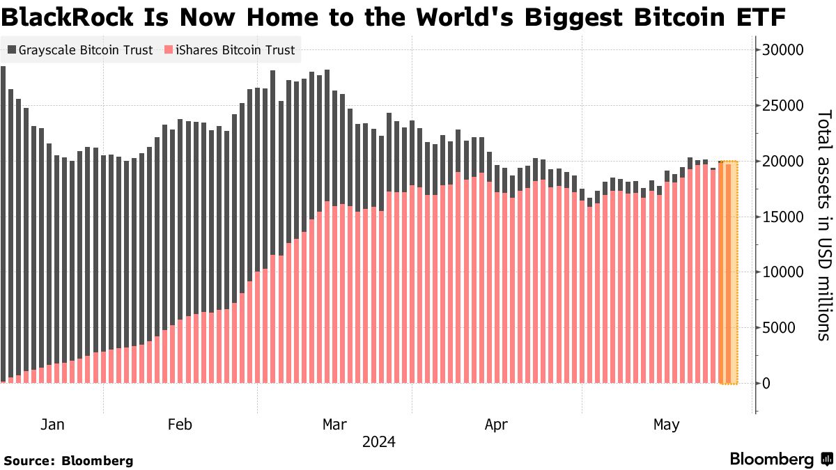 看看贝莱德的比特币现货ETF「IBIT」有多火爆吧!自从今年1月上市以来,IBIT的比特币持仓量已经超过了灰度的GBTC,达到了288,670枚BTC,而GBTC则只剩下287,450枚BTC,相差1200多枚。这不仅仅是数字上的胜利,IBIT的持仓价值也达到了196.8亿美元,略高于GBTC的196.5亿美元。富达投资的FBTC位居第三,持有价值111亿美元的比特币。