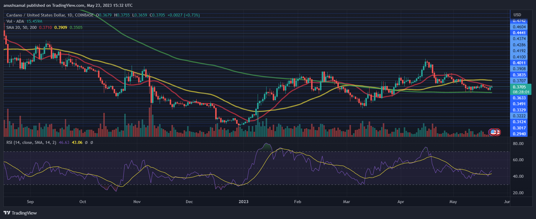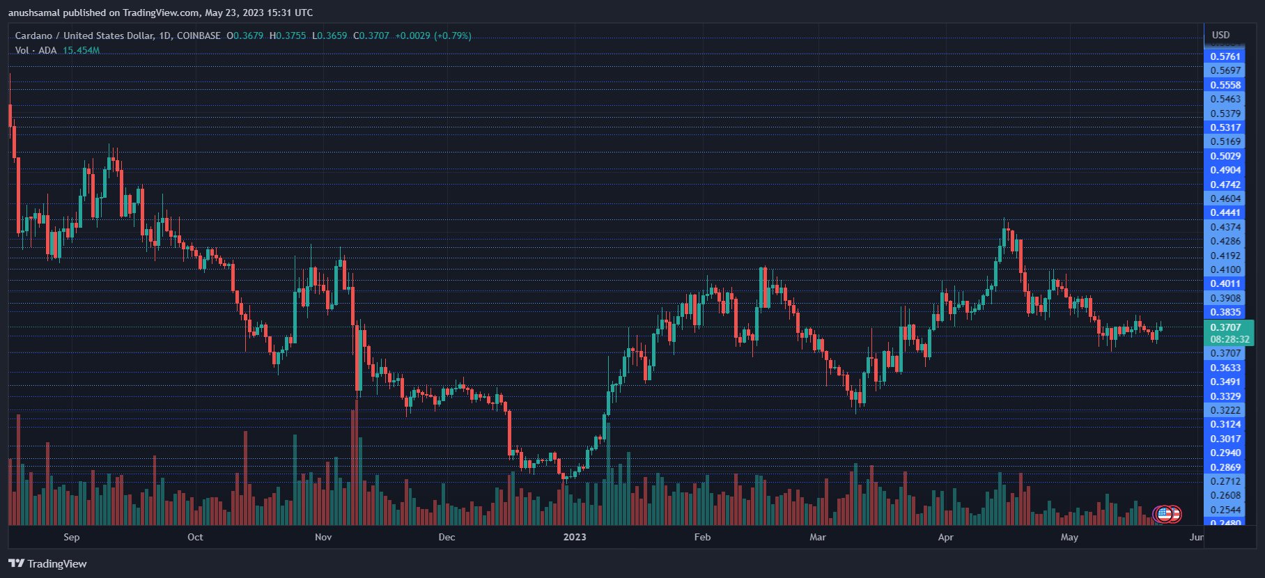 目前,ADA的价格为0.37美元。这枚山寨币正在经历紧张的价格波动,交易范围非常有限。ADA正接近0.36美元的关键支撑位。