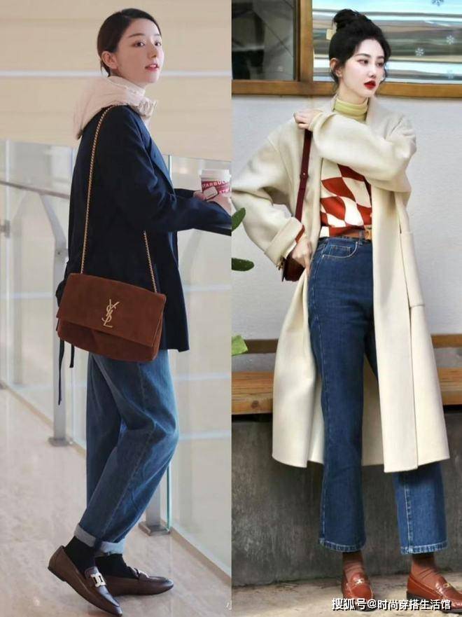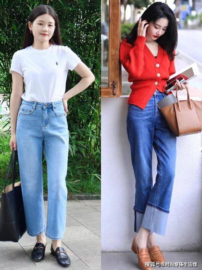 国庆出游最佳的搭配组合就是选择合身的九分牛仔裤,不管是直筒还是烟管的牛仔裤都能够完美的纵向拉伸视觉效果,同时让我们的穿搭比例看起来更加的高挑和显瘦。其次我们脚上搭配一双乐福鞋,将优雅和端庄的气质完美的展现出来,视觉上更加显高显腿长。