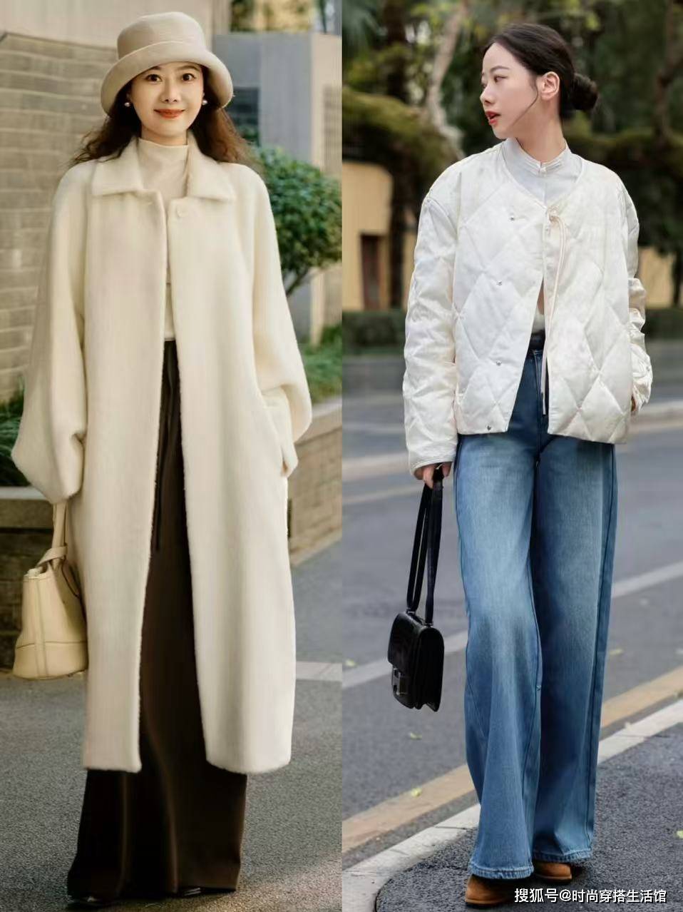 为什么很多三四十岁女人都不敢穿羽绒服、棉服呢,反而会更喜欢穿大衣呢?是因为大衣的版型几乎都是直线条,整体的剪裁简洁、线条流畅,把腰腹赘肉、胯宽腿粗的问题都可以隐藏起来,而廓形羽绒服、棉服这类衣服多半都是曲线型的版型,穿起来会横向拉宽身材,微胖和小个子阿姨记得避开。