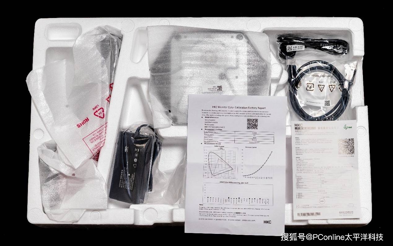 而在包装内部,HKC GS27QKS同样使用了厚实的泡沫塑料作为缓冲材料,稳妥地将显示器本体和所有配件保护在其中。