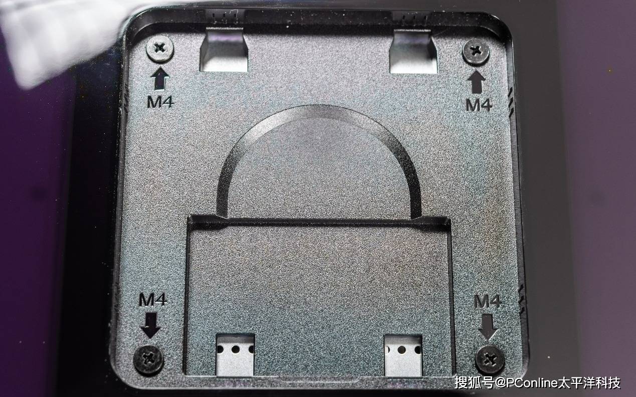 开完箱后,让我们先从显示器的支架部分开始看起。为了确保显示器在桌面上的稳固性,HKC GS27QKS的支架不仅沿用了HKC经典的六边形底座设计,更在底座内部加入了大块金属配重。