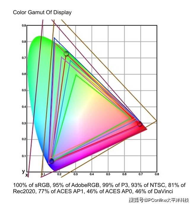 同时,色域容积更是达到了 162.6% sRGB、112.0% Adobe RGB 和 115.1% DCI-P3,这组数据明确展示了OLED面板色域广的特性,完全能满足专业图像处理和视频剪辑等对色彩有极高要求的应用。