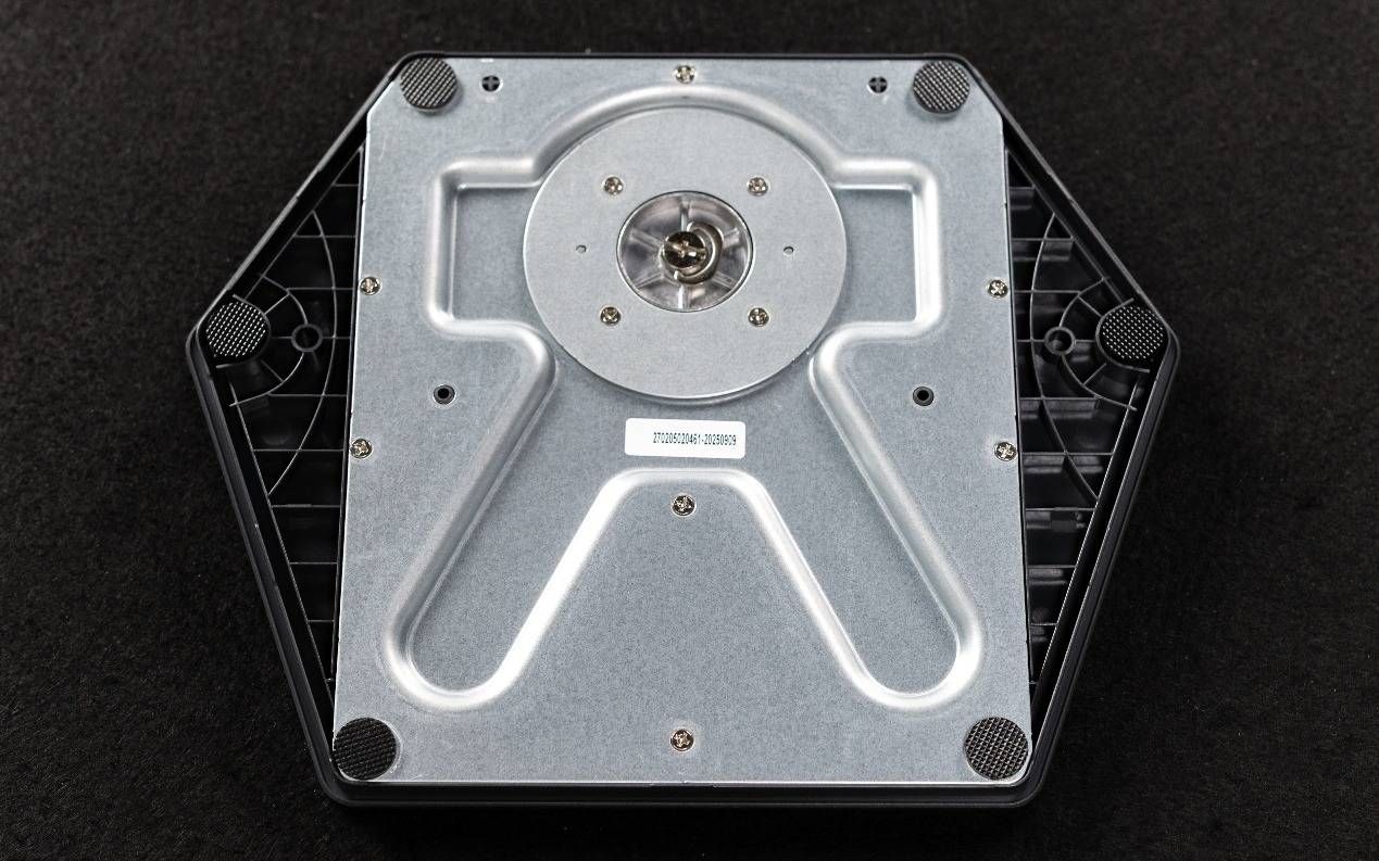 开完箱后,让我们先从显示器的支架部分开始看起。为了确保显示器在桌面上的稳固性,HKC GS27QKS的支架不仅沿用了HKC经典的六边形底座设计,更在底座内部加入了大块金属配重。