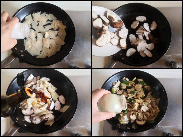 制作过程: 将青蒜苗清洗干净后切成段备用; 将香菇和千张切成片备用;烧锅水加入1勺盐,将千张片放进锅中焯煮两分钟后捞出备用。 烧热锅放入适量的油,将香菇片放进锅中翻炒几下,加入焯好的千张片放进锅中翻炒几下,加入少许生抽上色,加入少许盐调味, 最后将准备好的青蒜苗放进锅中翻炒至微微变色即可。