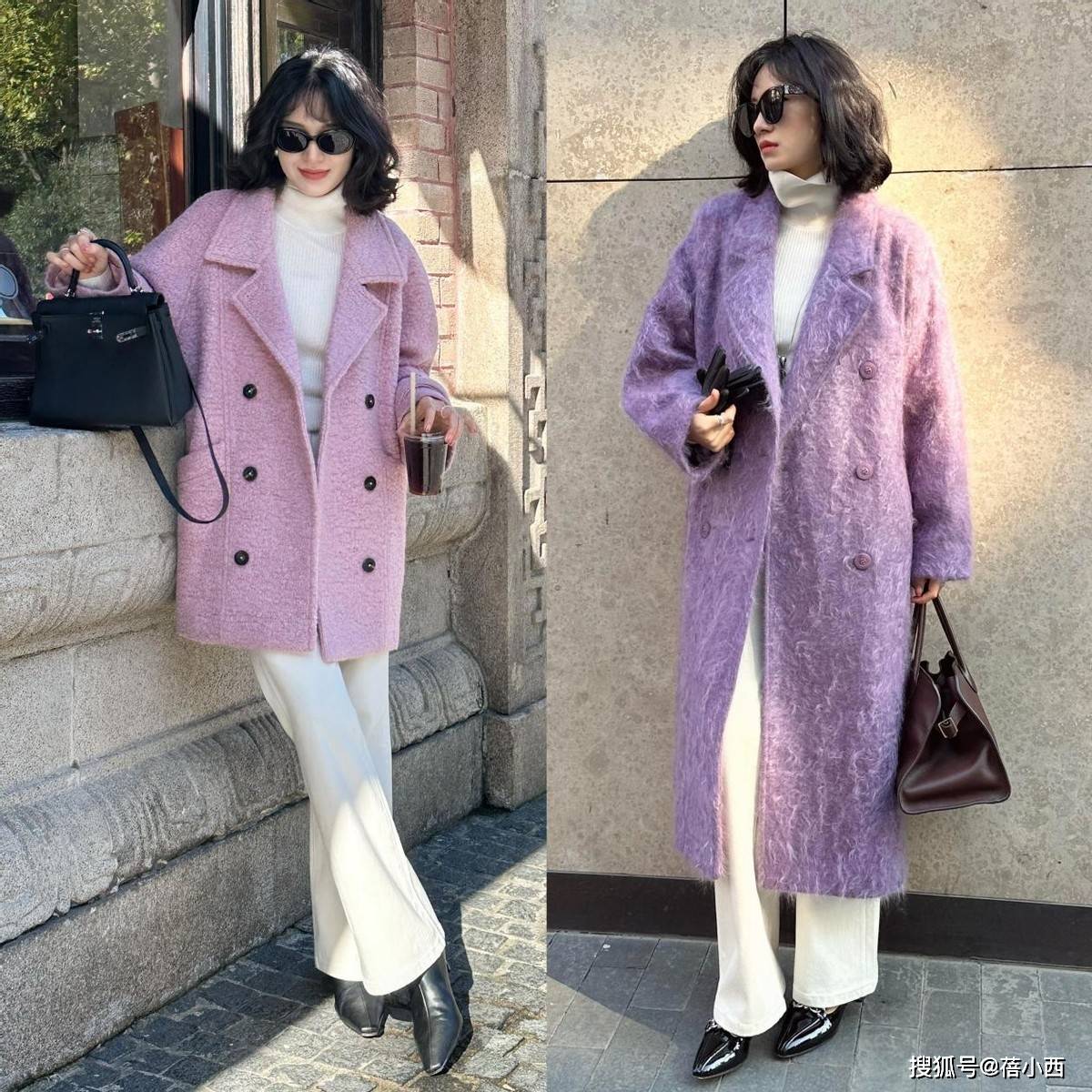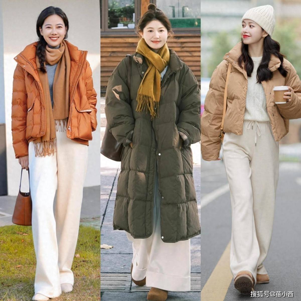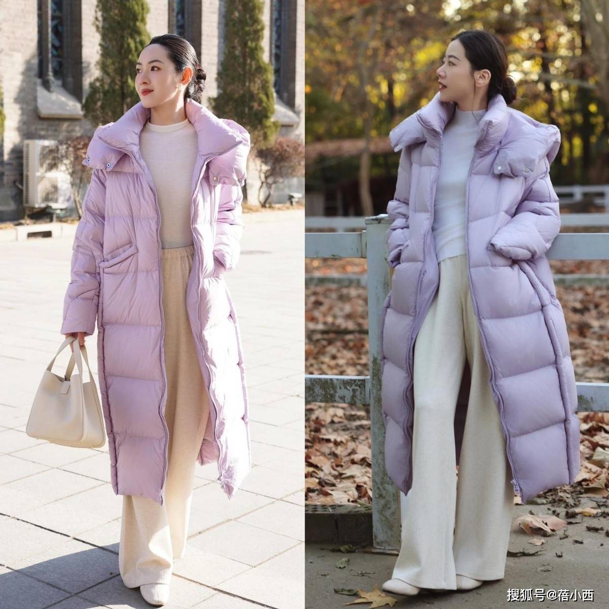 长款羽绒服虽然保暖,但容易显得拖沓,搭配小白裤就能轻松化解。紫色的长款羽绒服搭配白色阔腿小白裤,裤脚盖住鞋帮的长度,弱化了羽绒服的笨重感,内搭白色打底衫,和裤子呼应起来了,还中和了长款羽绒服的厚重,让整套搭配既保暖又高级,适合北方的寒冬,出门再也不用裹成“粽子”啦。