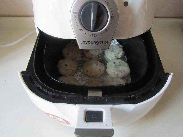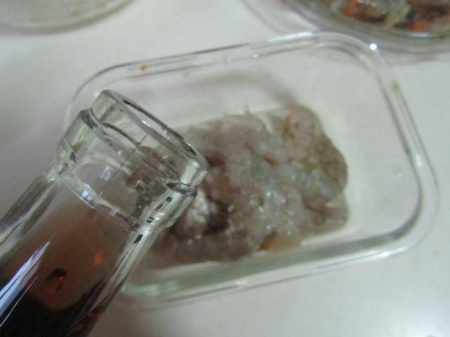 制作过程: 1. 将鲜虾去壳后挑出虾线, 清洗干净后挤出水分,加入少许盐、淀粉、料酒和姜末等调味料拌均匀腌制3分钟备用;