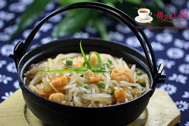 推荐菜谱【 鲜虾萝卜丝】原料: 白萝卜 1根 鲜虾 1盘 料酒1勺 淀粉 1小勺 葱花 少许 姜末 少许 油盐 适量