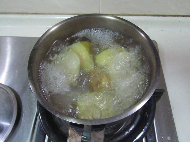 制作过程: 1. 将土豆切成小块, 放进锅中去煮,煮至土豆粉糯,用筷子很轻易穿过去后, 将煮熟的土豆拿出来去皮后,用刀背碾成泥备用;