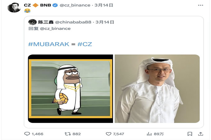 2025 年 3 月 15 日,加密货币圈子里突然冒出一个新梗——Mubarak,这枚新晋 meme 币迅速蹿红,原因嘛,还得从币安的 CZ(赵长鹏)说起。那天,他在自家平台上发了条动态,就俩字:"周末。" 还配了张跟 Mubarak 相关的图。这下可炸开了锅,Mubarak 的市值蹭蹭往上涨,直接冲到了 4000 万刀。大家都在猜,这是不是意味着下一个 TST 就要诞生了?能不能翻个十倍甚至更多?咱就来好好扒一扒这匹“幸运”黑马。