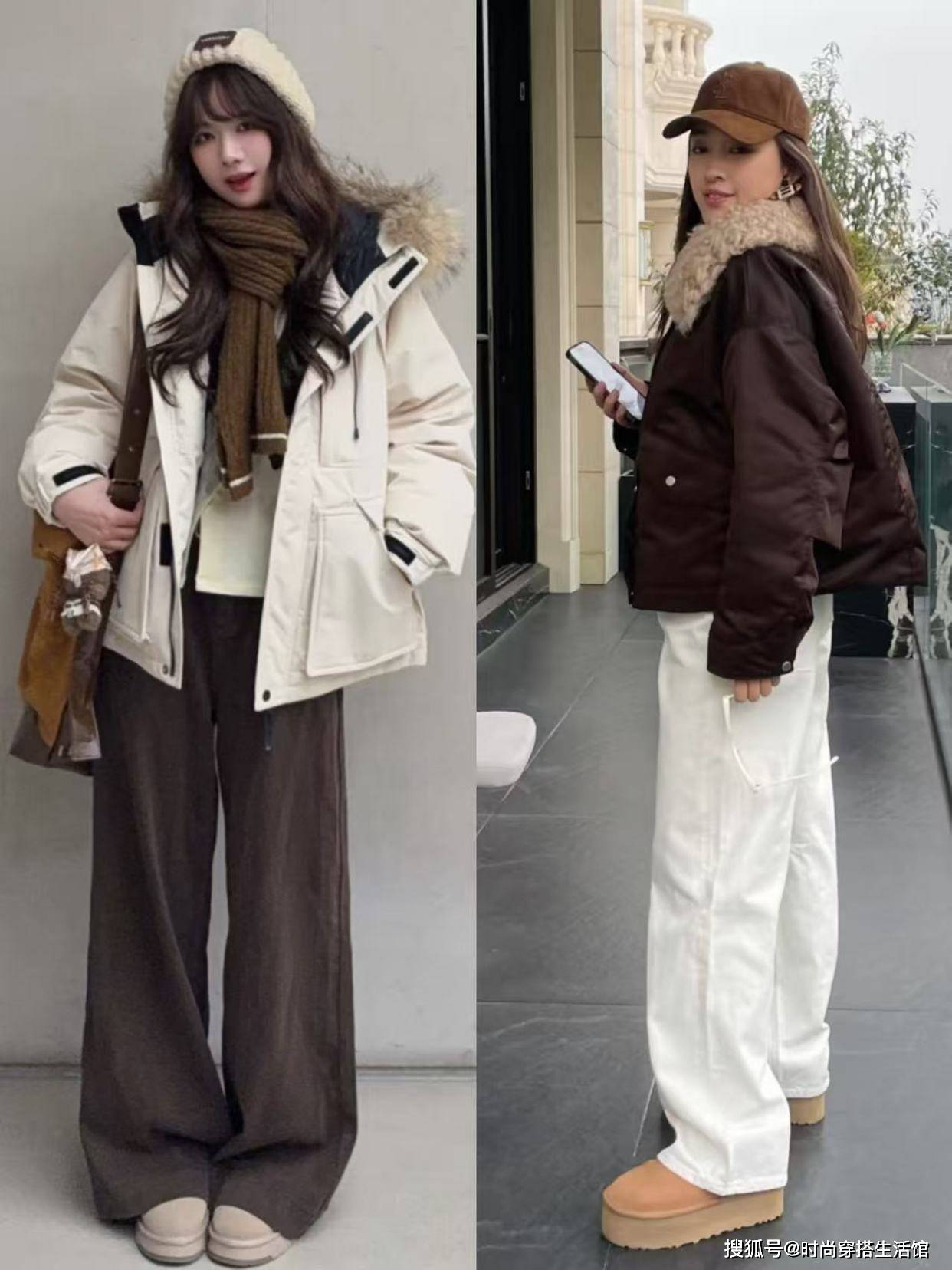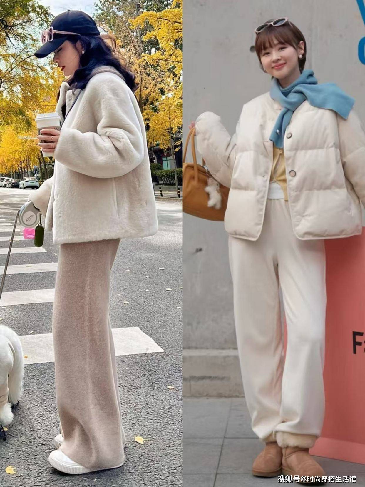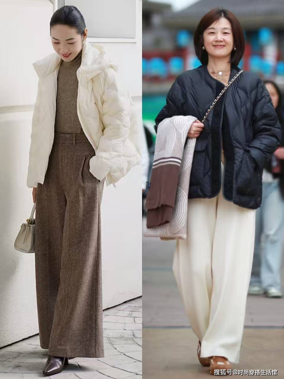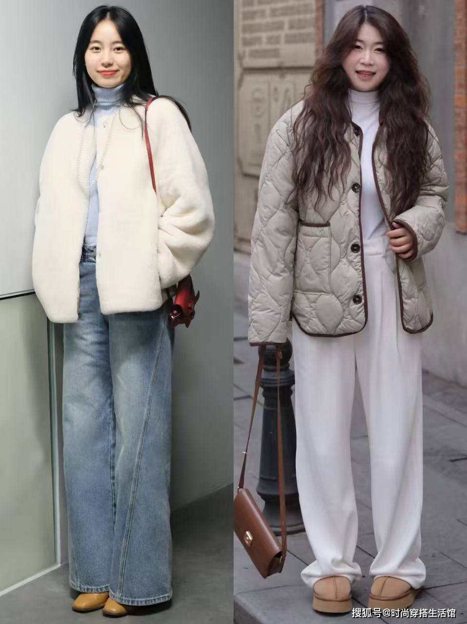 如果更看重搭配的舒适度,推荐姐妹们搭配阔腿裤,上半身的奶奶棉服柔软又舒服,下半身的阔腿裤可以藏住腿部所有缺点,简直太好穿了。担心显臃肿还可以敞开棉服,露出内搭的腰线,显高又显比例。