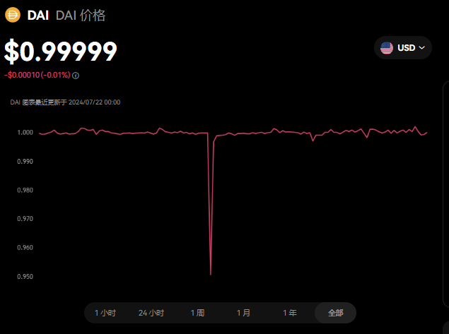 DAI价格表现(美元)
