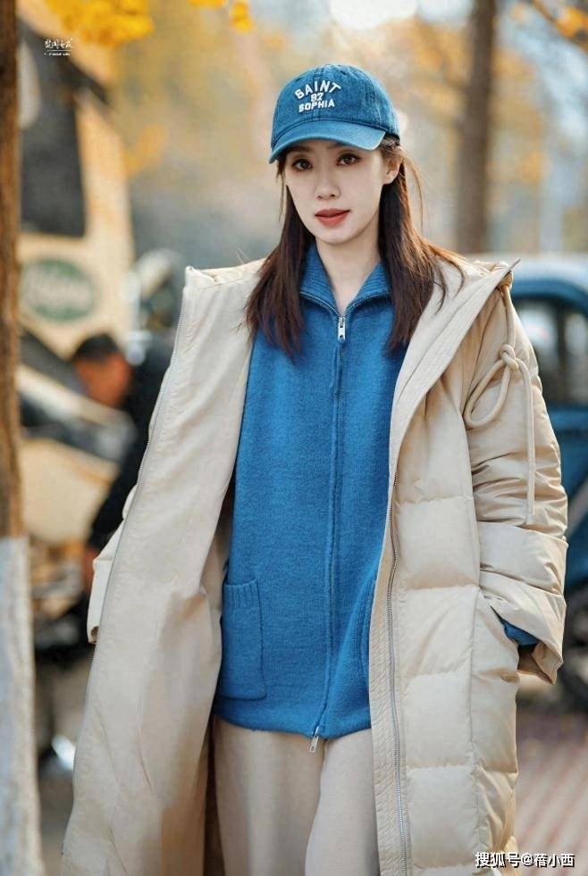 日常生活中,时髦精们在穿羽绒服时,内搭常会选择毛衣、打底衫,也有人会把目光放在外套上。张小斐在羽绒服里搭了一件蓝色外套,两者都是纯色面料,视觉上自然不会出现降低洋气值的缭乱感。蓝外套版型看上去挺宽松,它的里边估计还有其他单品,毕竟是在冬季,要考虑到肌肤的暖和度。老实说,里边的蓝色外套不管是不是加绒款,都可以充当外搭。