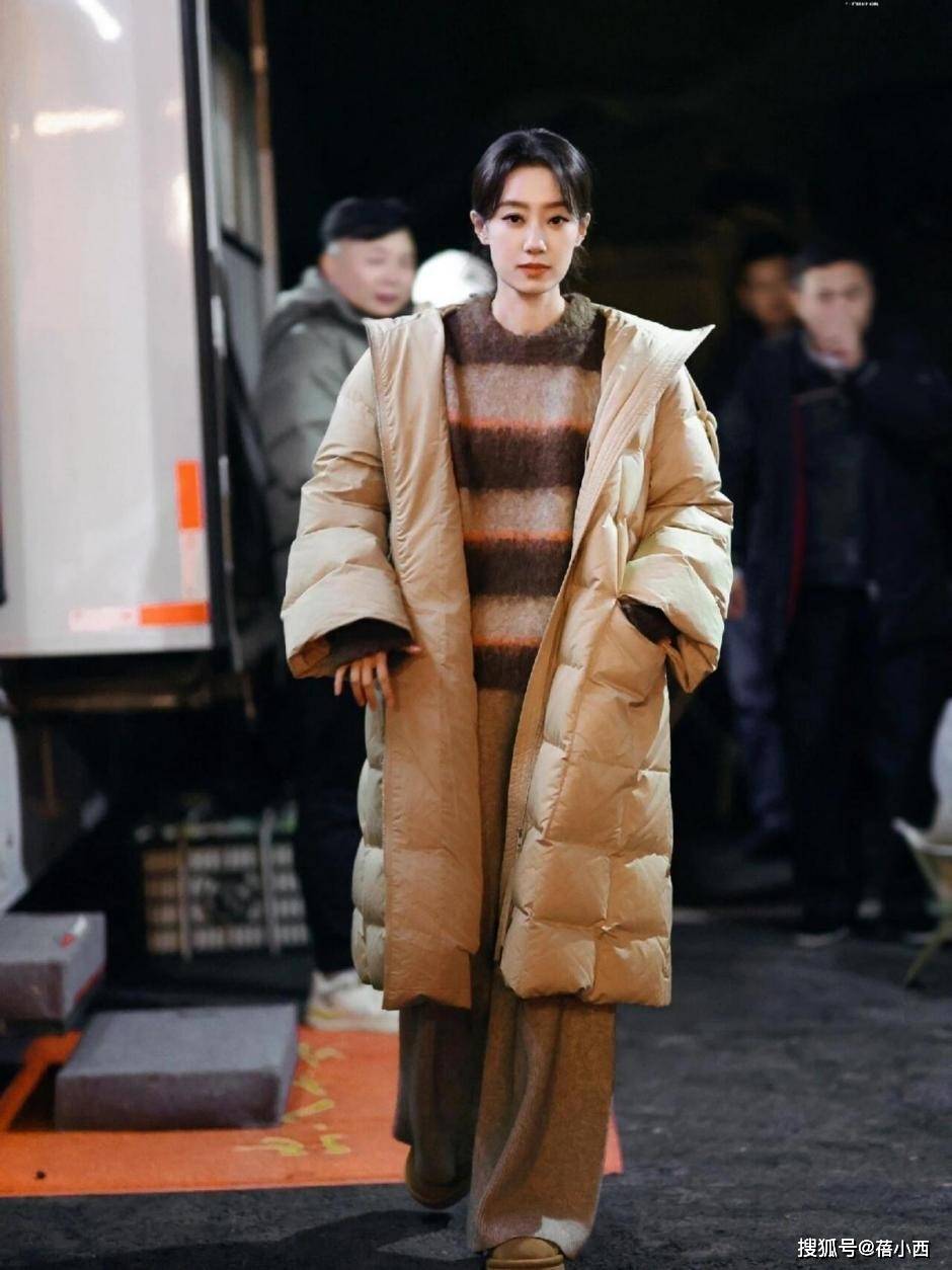 如果你不想显得自己臃肿难看,那么在挑选长款羽绒服时不要买特别宽松的。张小斐里边穿的毛衣在颜色设计上花了些心思,两种颜色的面料在分布上均匀又耐看。这件毛衣是小领口,可能不受一些女孩的喜爱,觉得穿脱会拉扯到面部肌肤。