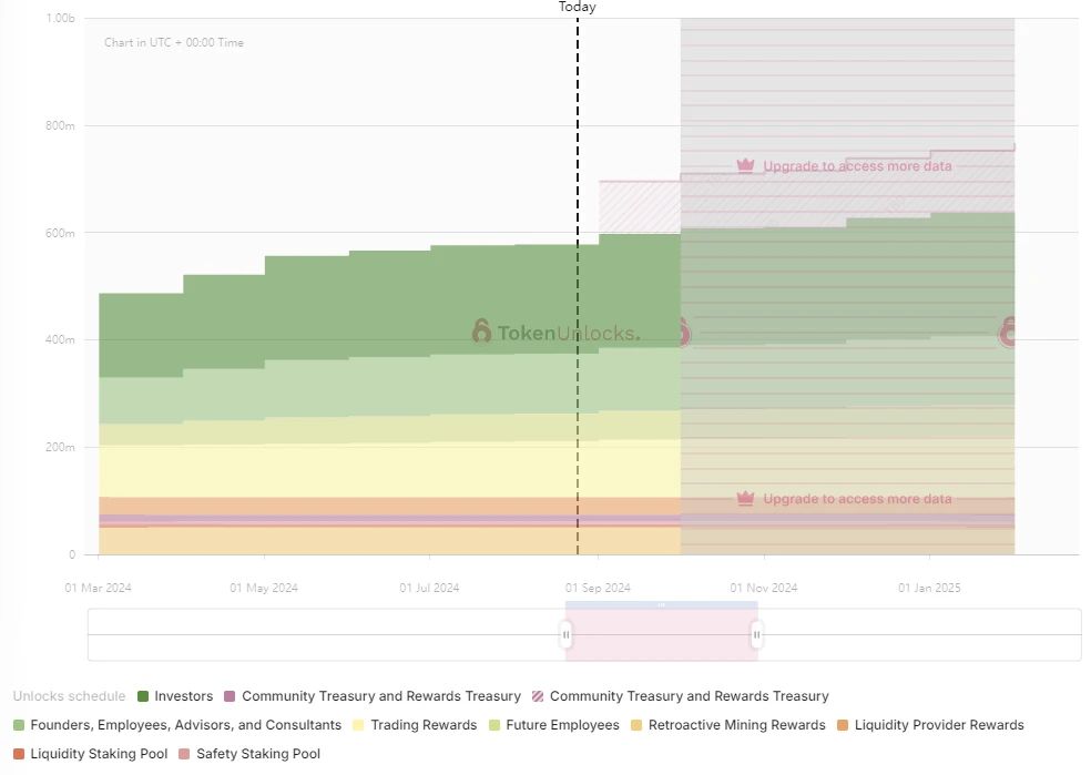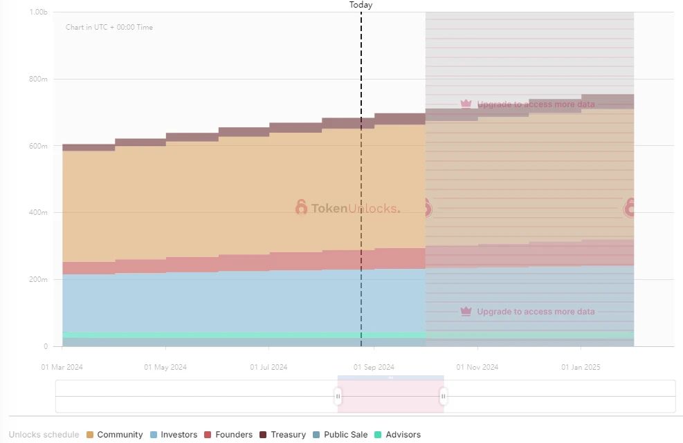 本轮解锁主要面向机构,分别为投资者462万枚(价值约513万美元)、项目方255万枚(价值约283万美元)、未来雇佣117万枚(价值约130万美元)。