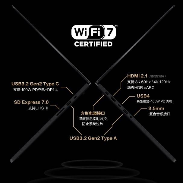 薄至14.9mm的超薄机身与轻约1.8kg的轻巧重量,让它在16英寸创作本中堪称“轻薄标杆”。无论是日常通勤还是长途出差,都毫无负担。其采用CNC一体成型工艺的铝合金机身,不仅触感细腻、质感高级,更赋予机身卓越的结构强度。