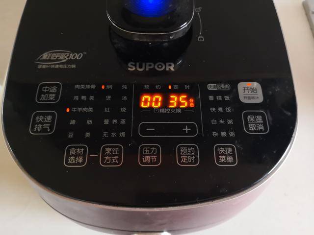 4. 按下电炖锅上炖煮牛羊肉的功能键;