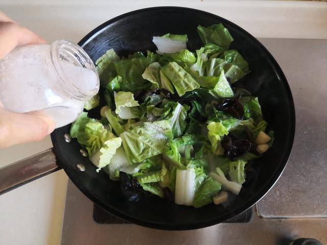 4. 微微变色后加入少许盐调味,翻炒均匀即可。