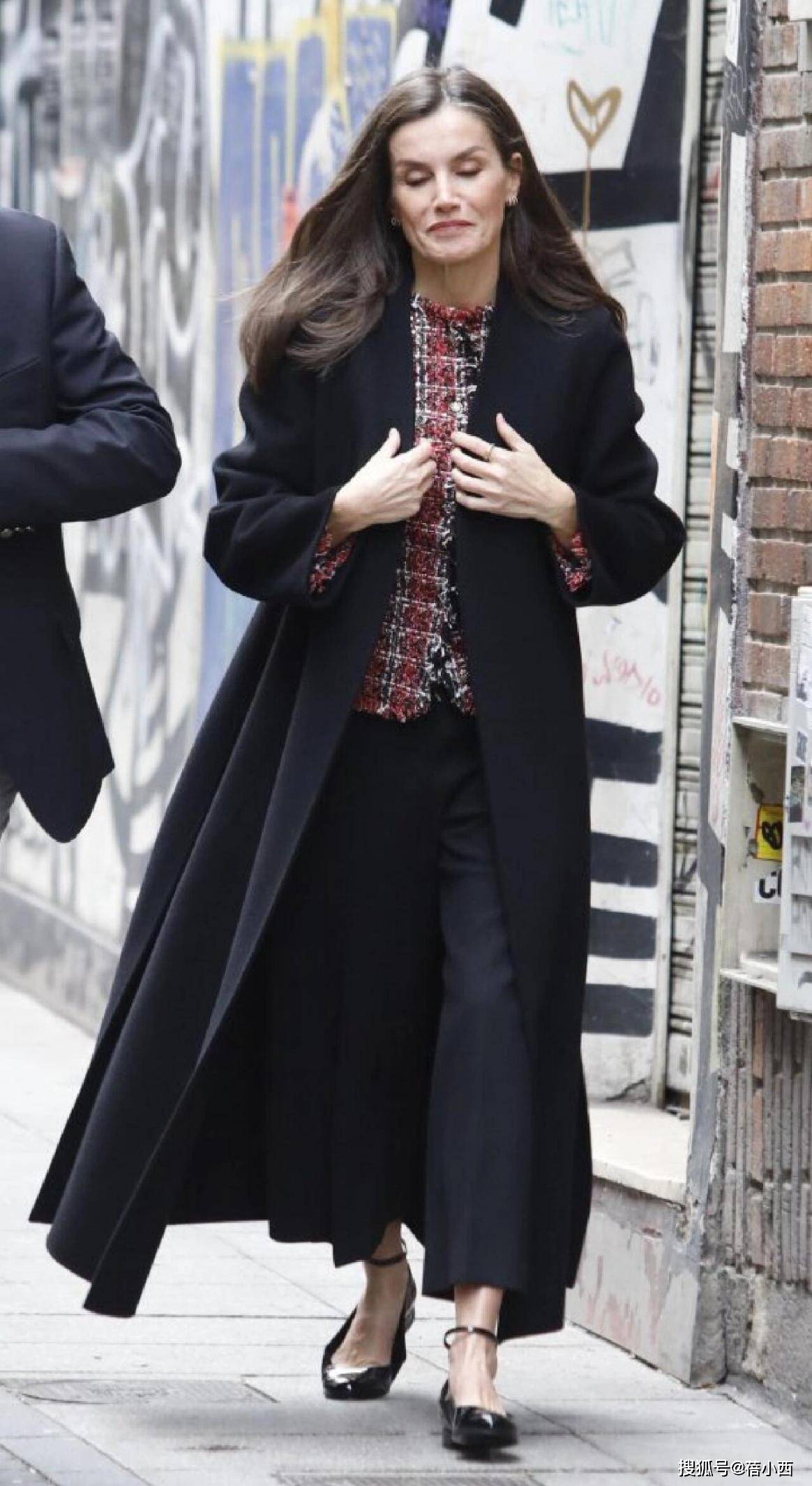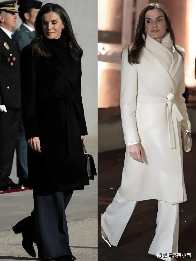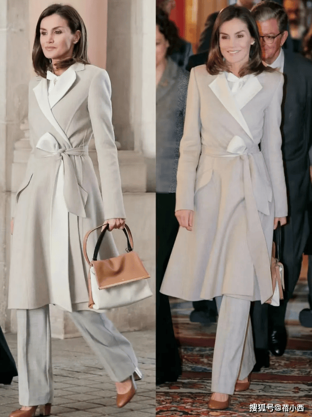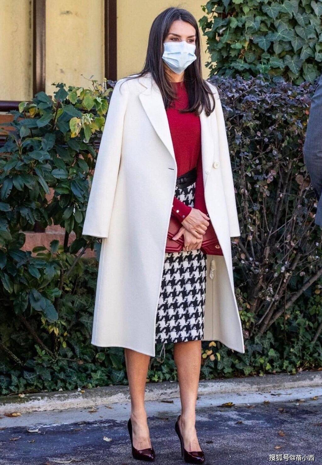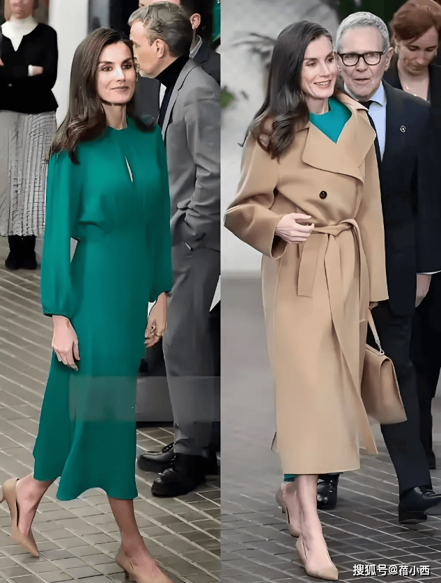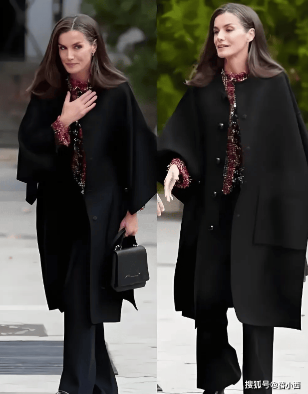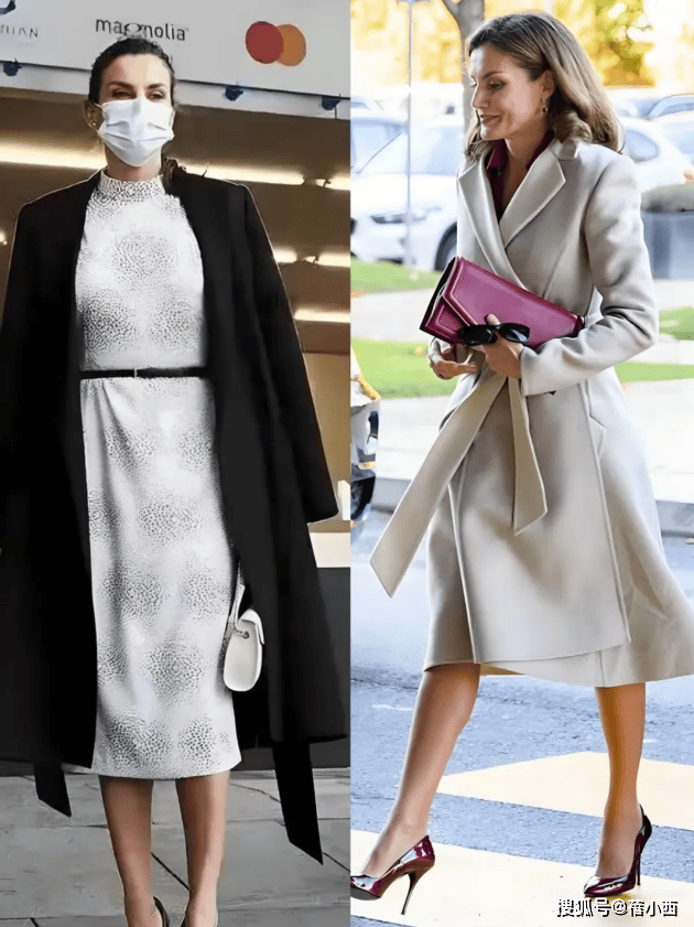 在穿大衣的时候,莱蒂齐亚从不用短裙博眼球,她的裙装永远精准落在膝盖下方5-10厘米处,既不拖沓也不暴露。直筒款、A字款是她的偏爱,面料多选用羊毛、真丝混纺等自带质感的材质,一看就很高级。