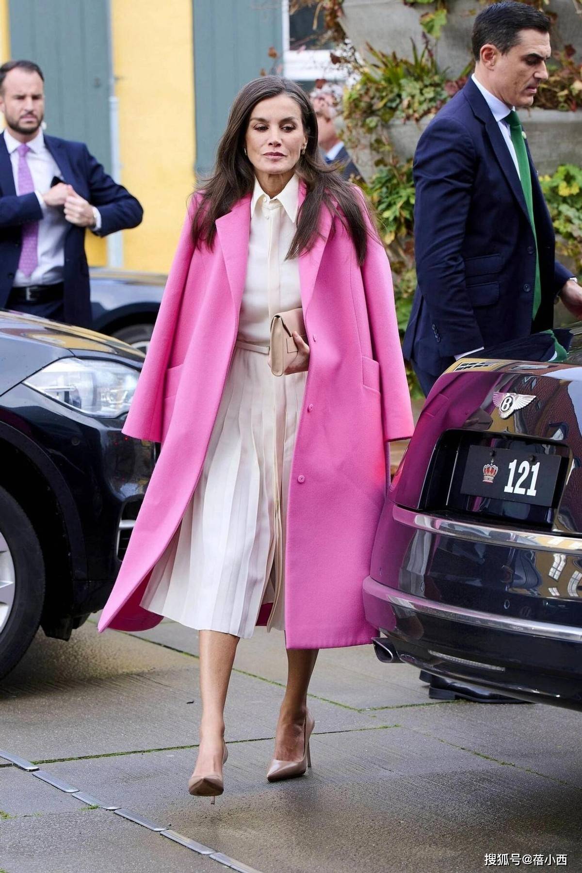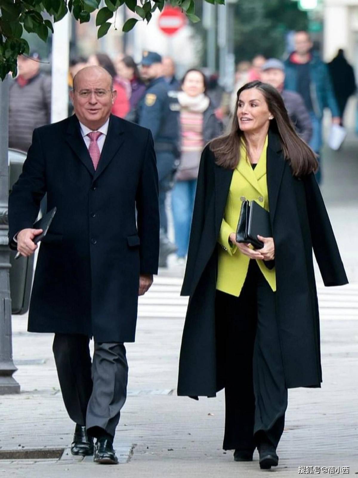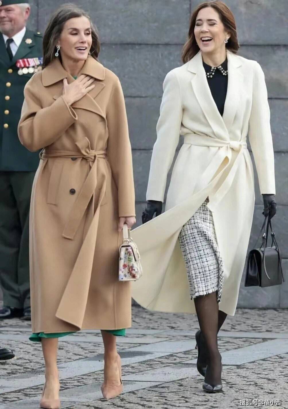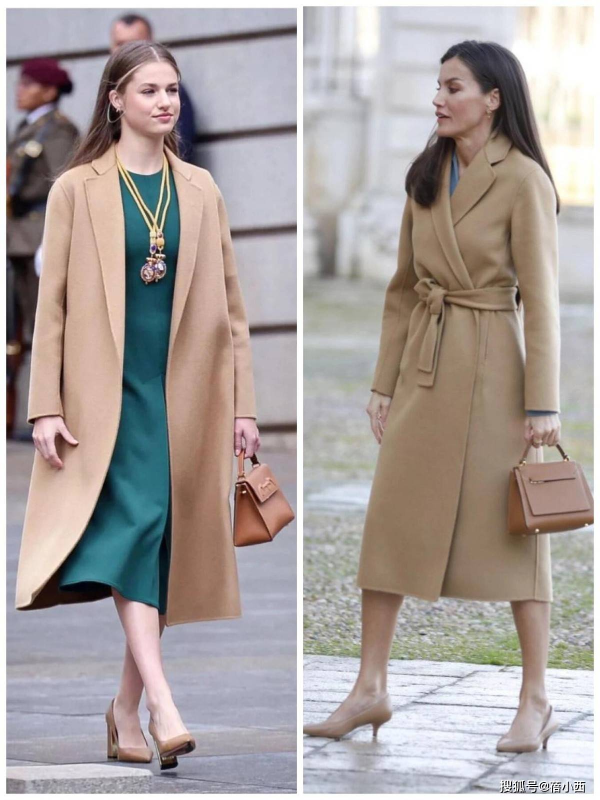 在穿大衣的时候,莱蒂齐亚从不用短裙博眼球,她的裙装永远精准落在膝盖下方5-10厘米处,既不拖沓也不暴露。直筒款、A字款是她的偏爱,面料多选用羊毛、真丝混纺等自带质感的材质,一看就很高级。