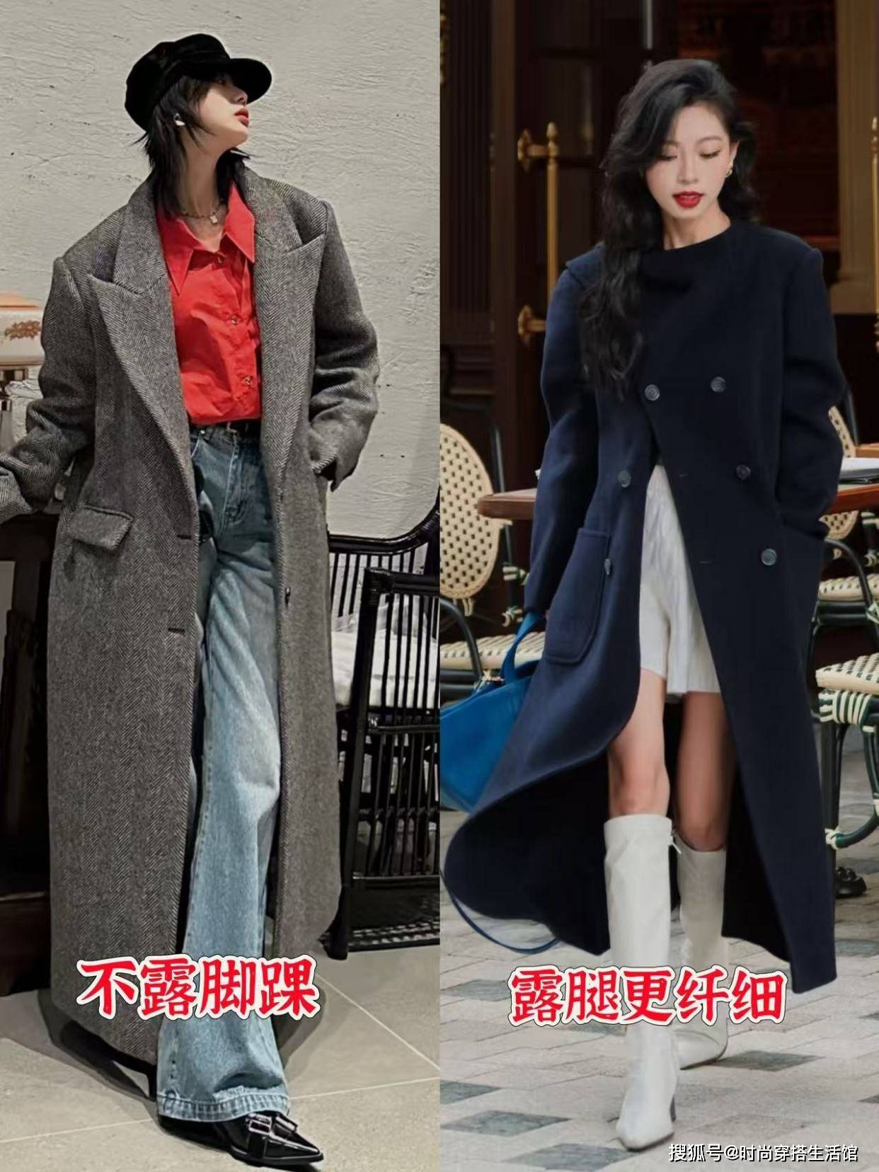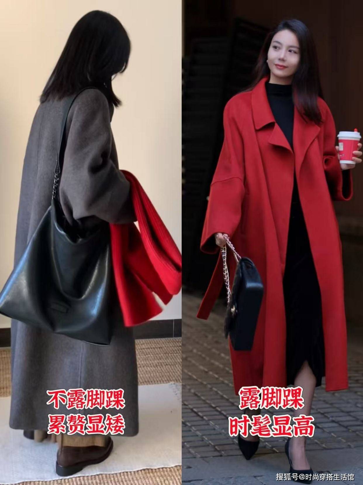 那么我们可以看上图大衣对比,像是选择拖地长度的大衣选邋遢还是选择过膝不过踝的长度露出纤细的脚踝,就算身高不在线,照样可以显高显腿长。