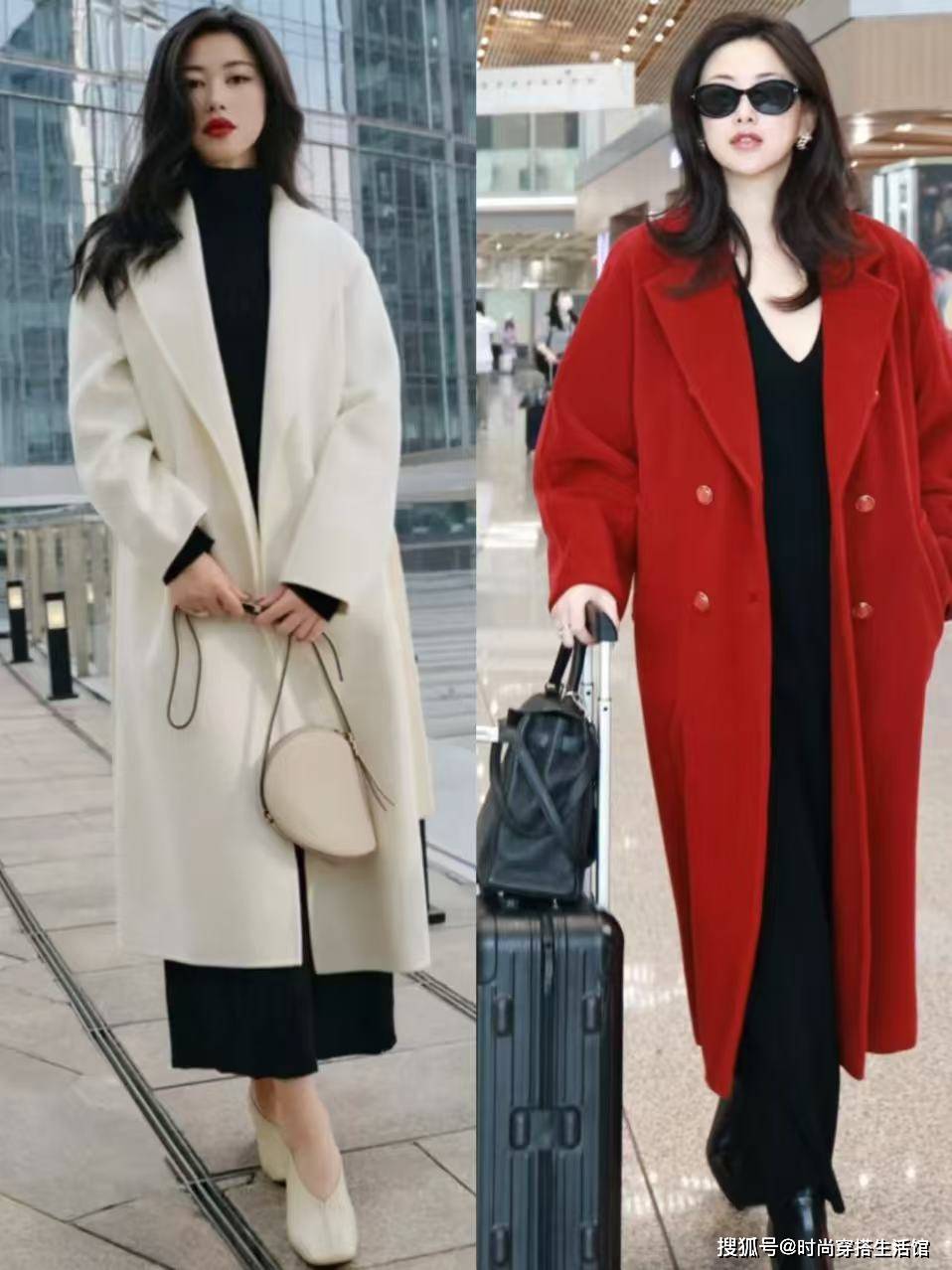 反之我们可以看朱珠的大衣穿搭,选择过膝不过踝的长度,能够露出纤细的脚踝,不仅不会影响保暖性,同时还能遮肉显瘦。