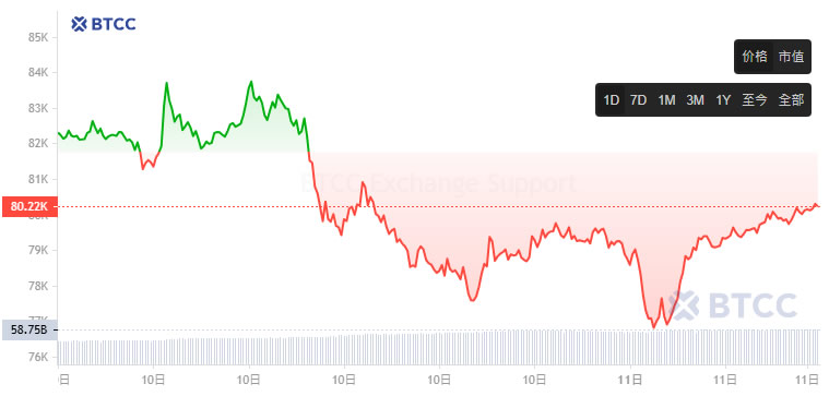 根据行情数据,比特币的交易价格为78678.6400 美元。在过去一天里,该资产价值上涨了-2.50%,距离价格高点仅一步之遥。