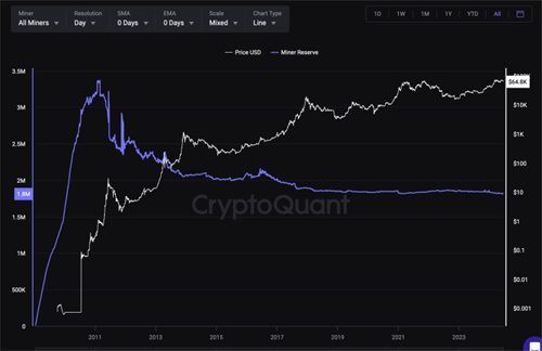 年初时,矿工们还持有大约 187 万枚比特币,但现在这个数字已经下降到了 181 万枚,这是自 2010 年以来从未见过的低点。储备的下降表明,矿工们更倾向于出售他们持有的资产。