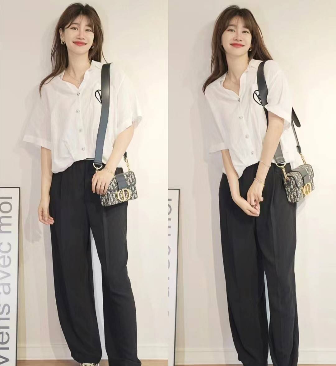 黑色阔腿裤永远都是可以包容身材、包容年纪的存在,既可以利用T恤和它的搭配,解锁休闲的感觉,也可以加入衬衫,稍微显得干练一些。
