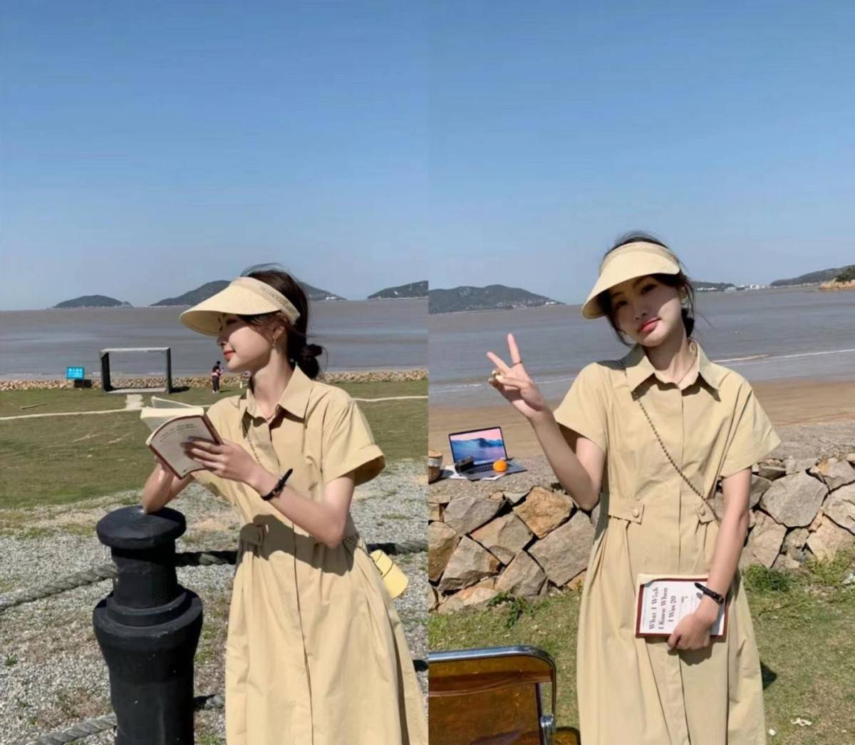 像这条卡其色的衬衫连衣裙,它是一款不会过时的色彩,而且对肤色的要求没那么挑剔,可以打造出比较简单的装束。