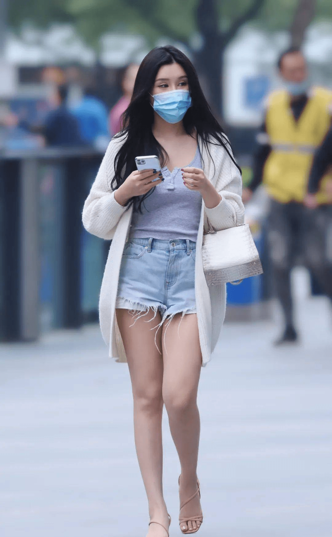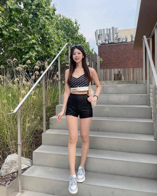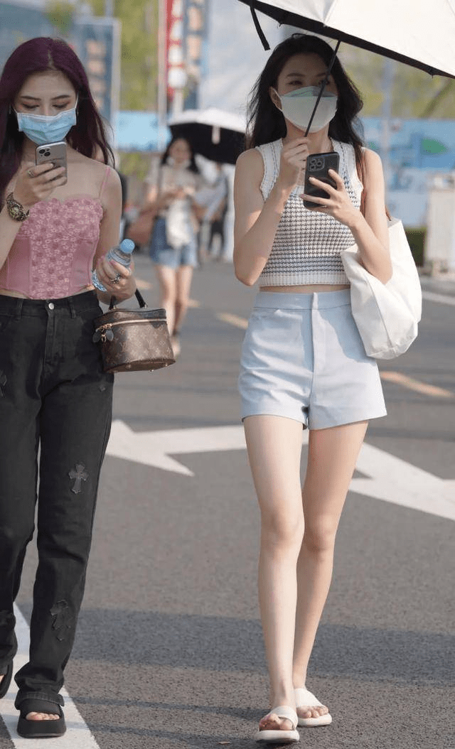 图中两姐妹相约漫步街头,而且都穿得不简单,属于很会穿的那一类,右边女生选择了短款背心,这不是运动健身时穿的那种背心,而是具有休闲气息的款式,背带很宽大,穿在身上很舒适没有束缚感,圆领的剪裁大众又经典,还能秀出颈部和锁骨。