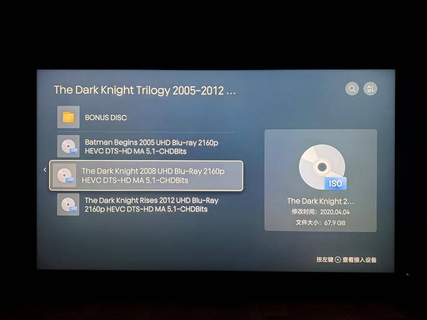 从内置播放器的表现来看,海信现在已经做得比较完善了,除了还不支持蓝光原盘的导航功能以及蓝光原盘的杜比视界点亮功能之外,其他部分都做得让我们觉得舒心,包括音轨和字幕的选择,会比其他品牌看起来更人性化。另外过去一些ISO格式视频,主要是蓝光原盘,海信的机型支持得一般,不过这次测试我们发现我们自己的ISO文件都能顺利读取,显然兼容性提升了。