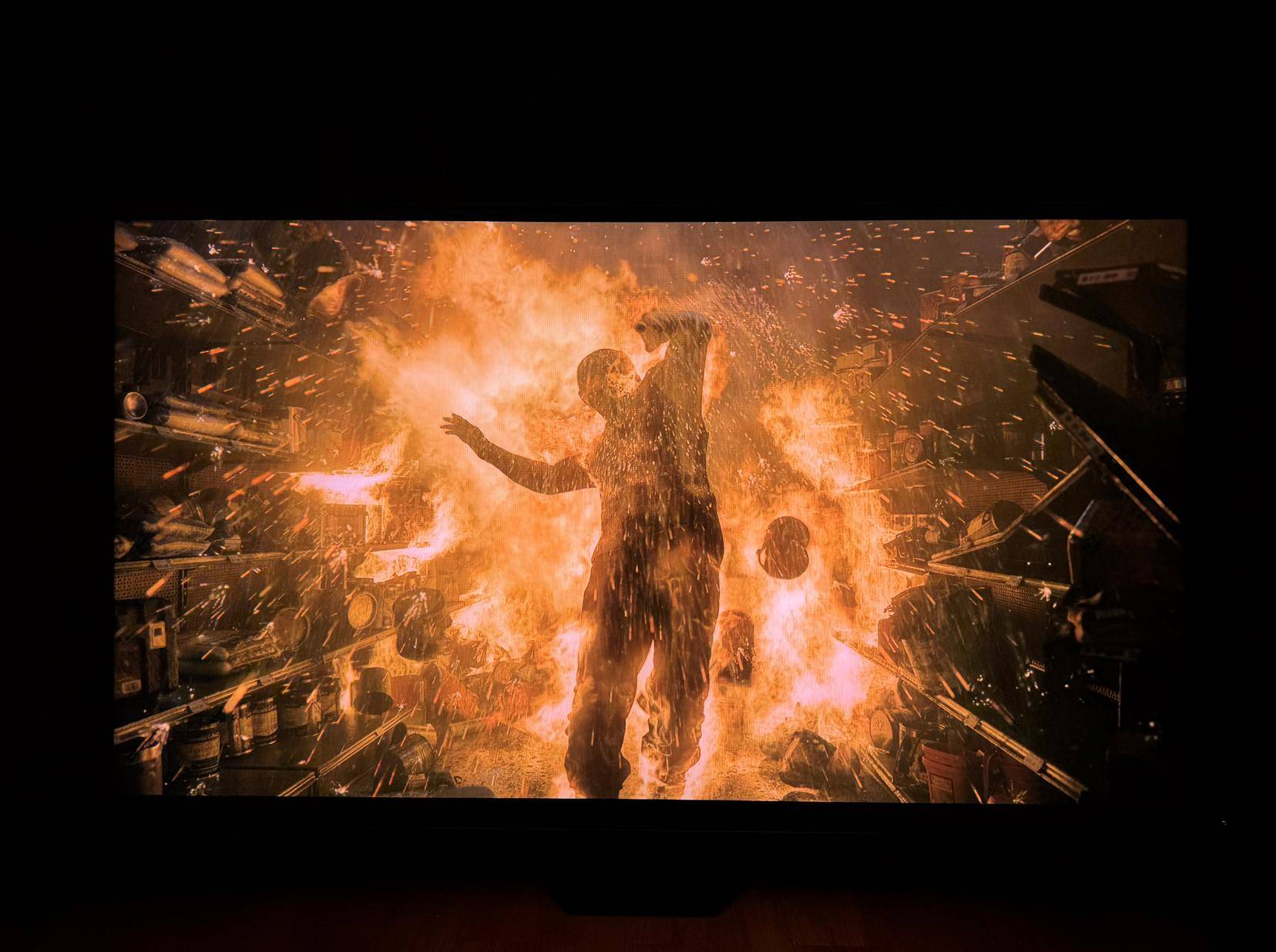 先来说说光晕部分,实际上由于因为背光的改变,这部分或许我们应该称之为色晕。U7S Pro在这部分的表现很优秀,不是说完全没有色晕,一部分是因为色晕被控制得很好,区域比较小;另一部分是因为色晕在一些场景上更容易被人眼忽视。所以实际看起来,不会让我们观影受到影响。由于我们这里也有其他一些RGB-Mini LED电视,对比起来这部分U7S Pro明显要做得比其他产品更好。