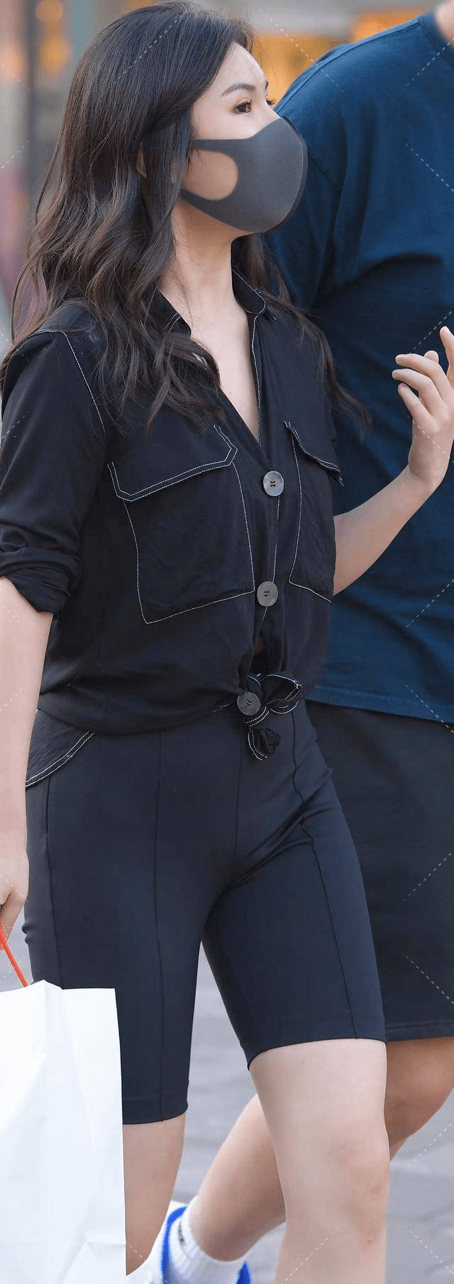 她的耳垂上挂着一对白色的耳环,呈现出一份清新的淑女气质。打底衬衫的紫色很有气质,彰显出她的高贵和卓尔不凡。在商业繁华的街区,这位小姐姐给人留下了独特的印象。她身穿的那件黑色的西服,展现了她的成熟与稳重,体现出一种自信和坚定品格。同时,她又能用最纯净和淡雅的白色耳环去衬托自己的美貌与纯粹,为整个形象增色不少。