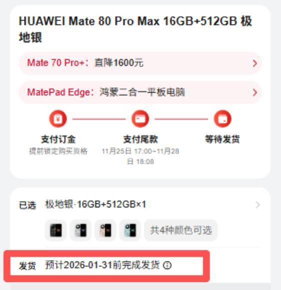 如果消息属实,Mate 80 标准版的备货量最为充足,因此能够较早发货;而其他版本的供货相对有限,从而拉长了消费者的等待周期。