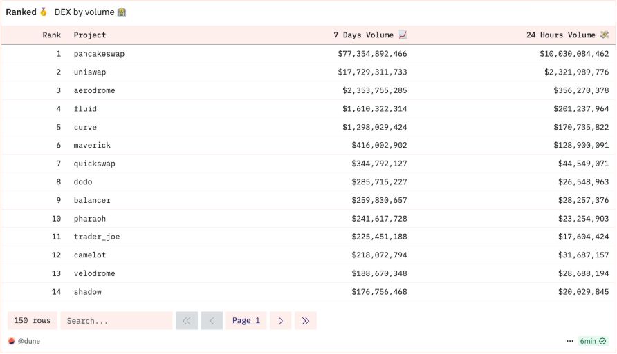 Pancake 的这一跃迁并非偶然。在 Dune 的数据中,PancakeSwap 本轮增长呈现出显著的两阶段爆发: