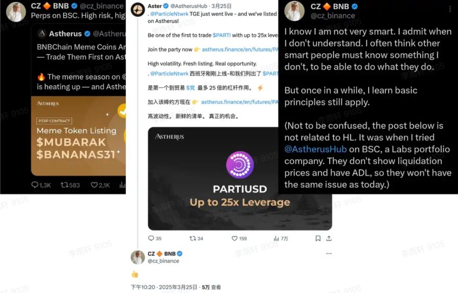 值得一提的是,多次与 CZ 的公开互动中,社交平台上关于它何时上线 交易平台 的讨论热情高涨。种种迹象都表明,Aster 不仅是 BNB Chain 永续市场的新宠,也正成为 BNB 系争夺链上流动性的又一张王牌。