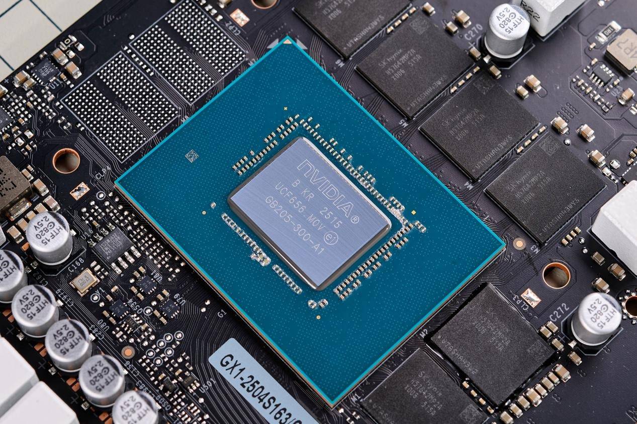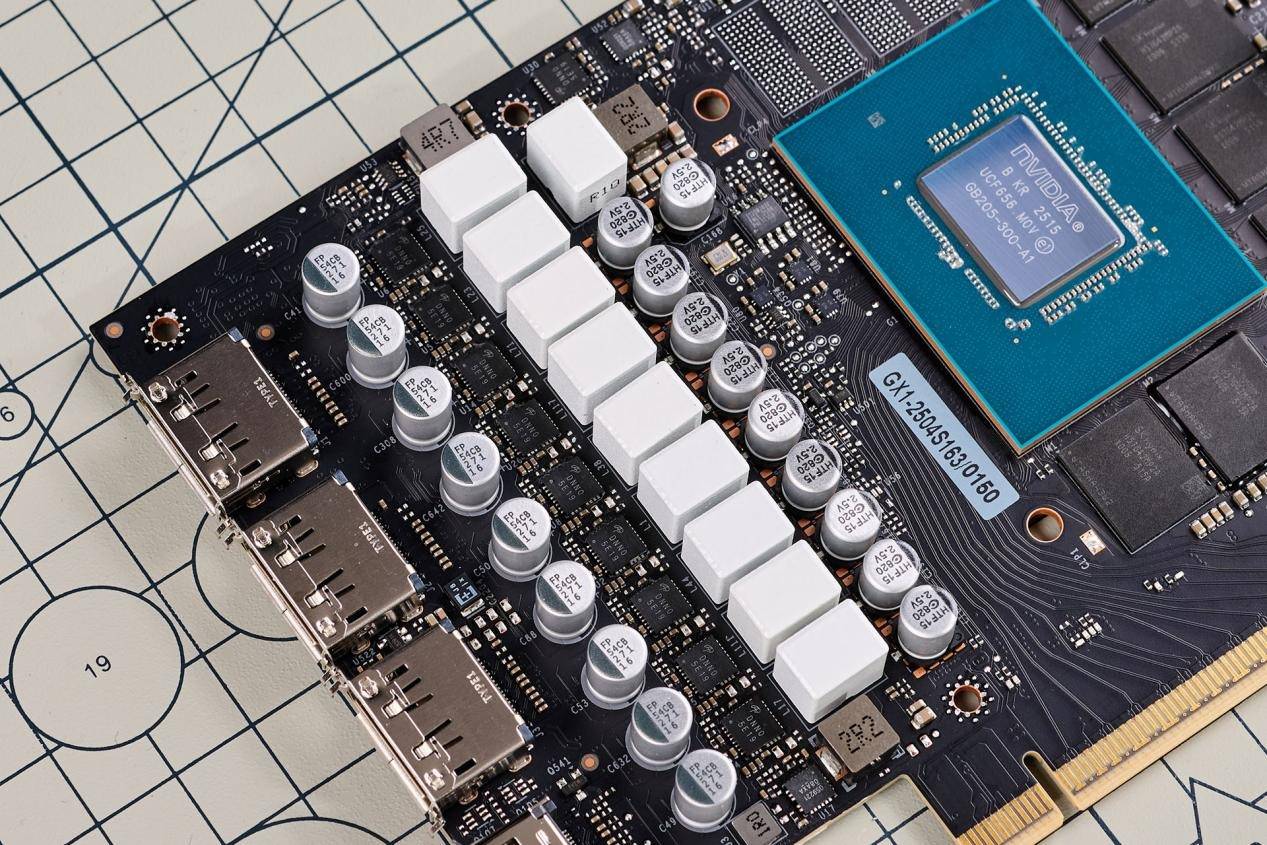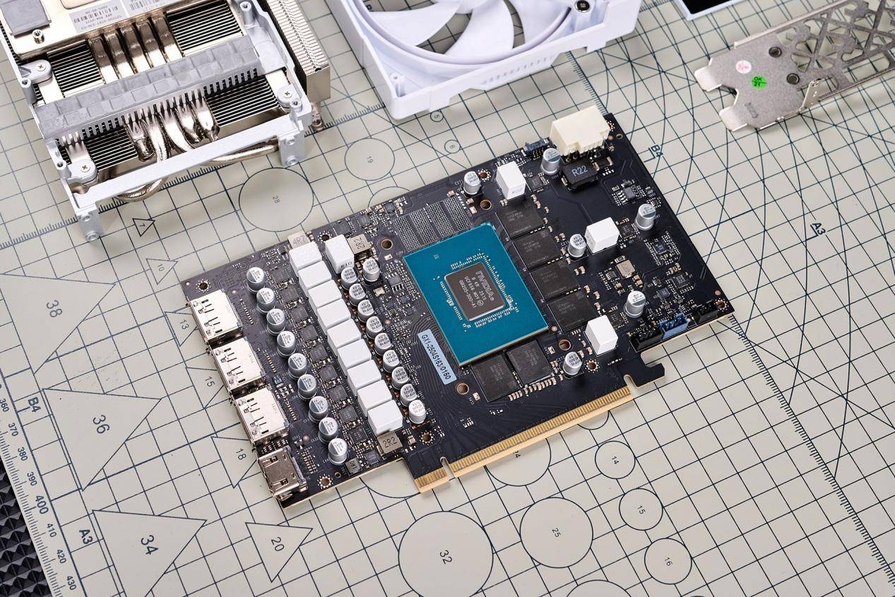 GB205核心被竖置于PCB中央,周围环绕着6颗GDDR7显存颗粒。这样的设计可以最大限度地缩短信号传输路径,提升数据交换效率,有效降低延迟。