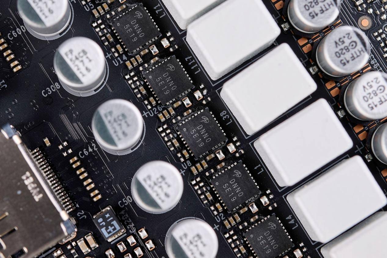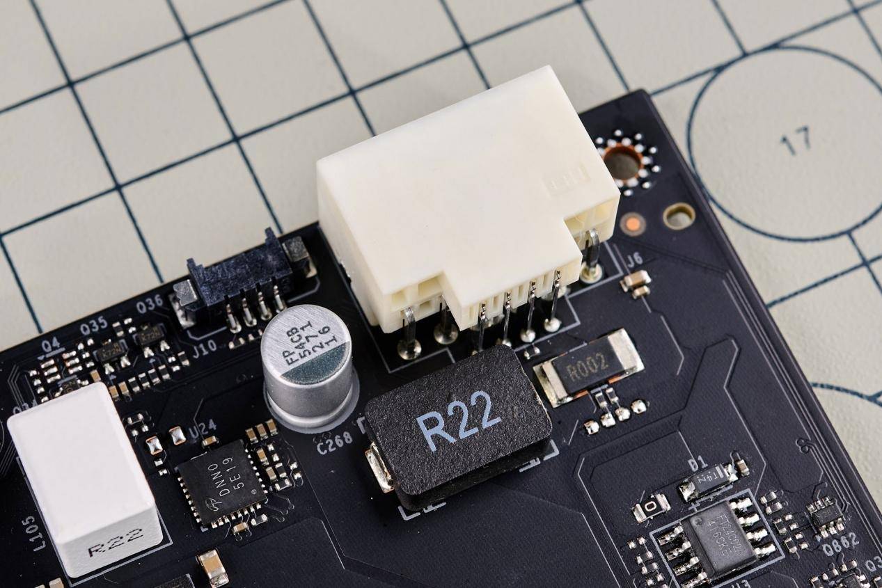 供电接口位于PCB右上角,元件采用了高规格”H++”标识的12V-2x6供电接口。